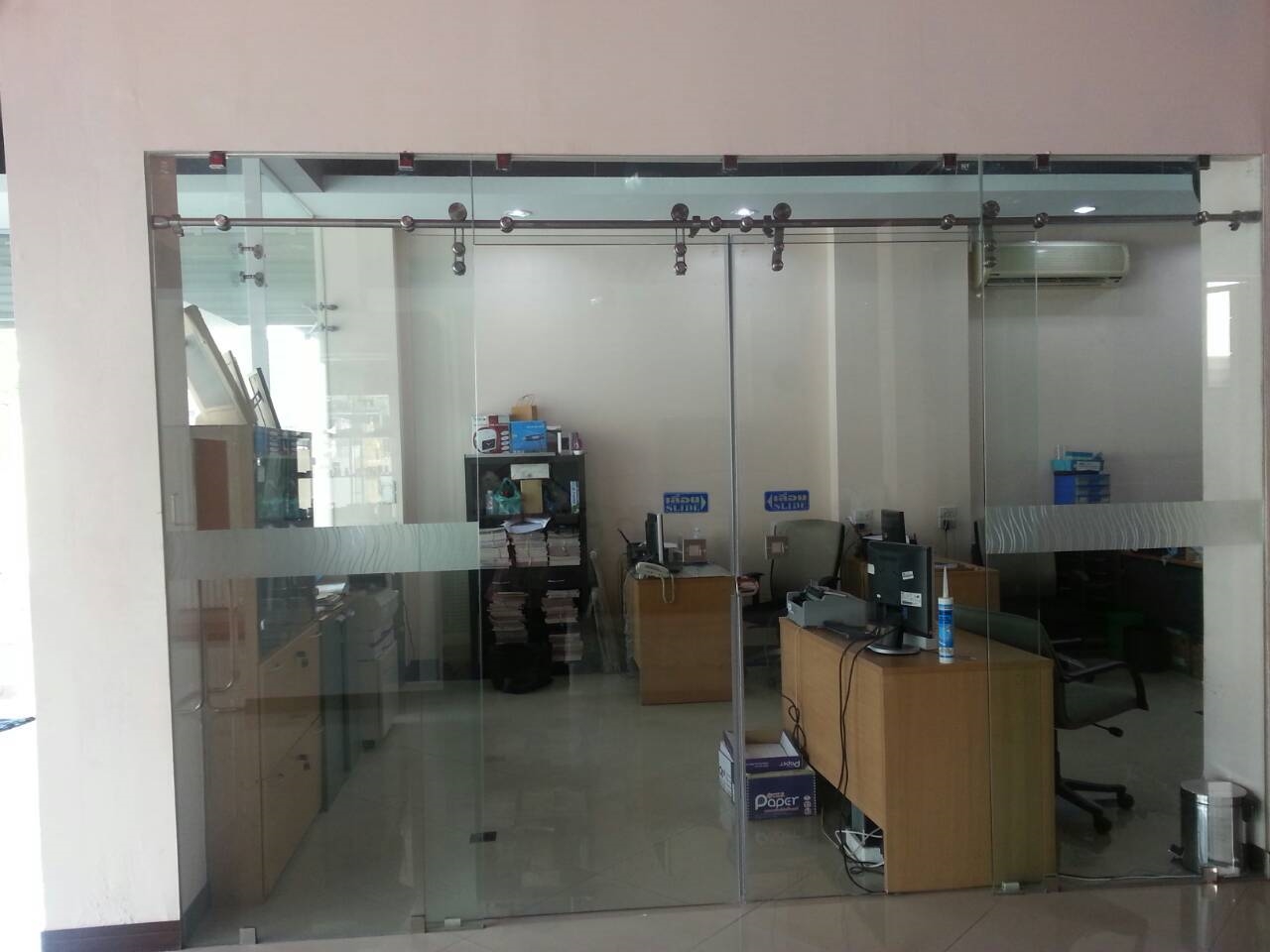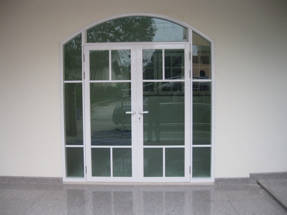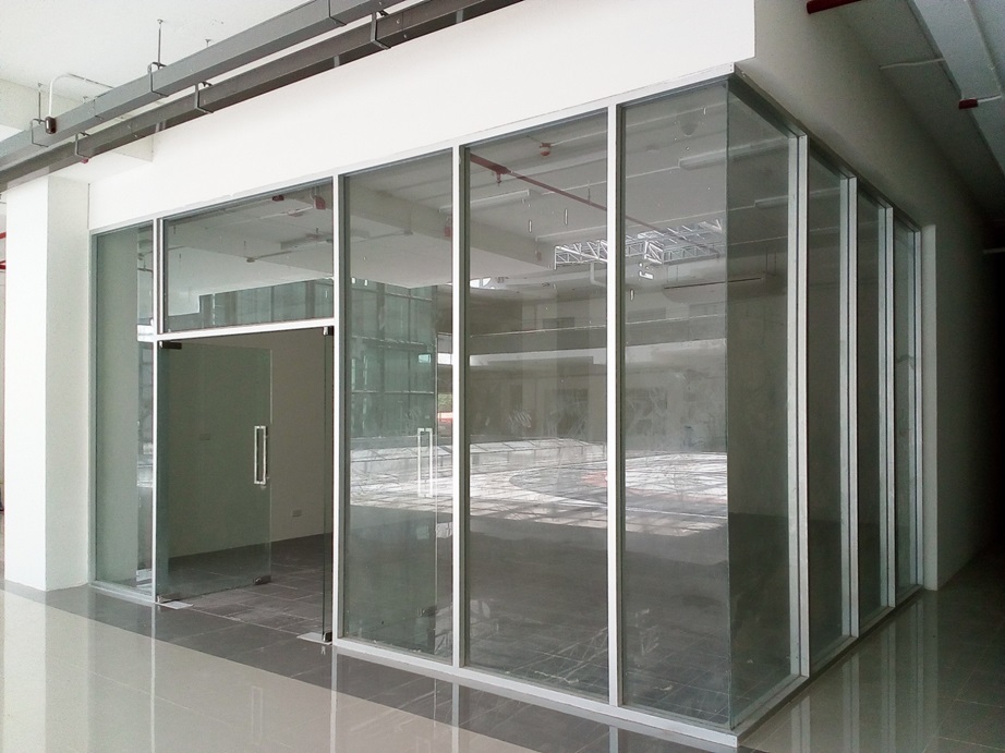 • ออกแบบ ติดตั้งแผงกระจกหน้าอาคาร, ประตูกระจกโชว์รูม หน้าร้านค้า, บานสวิง วงกบ อลูมิเนียมสีและเกรดต่างๆ ประตูกระจกบานเปลือย มีกุญแจระบบล็อกสองชั้นปลอดภัยทนทาน